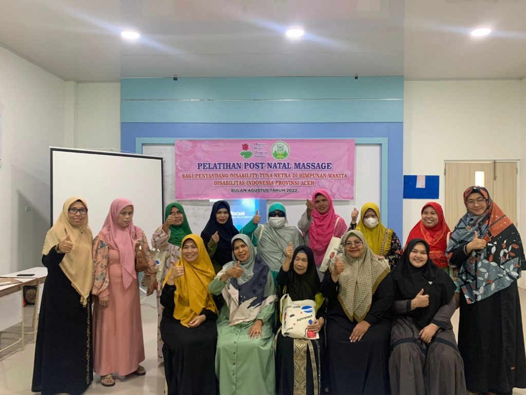 Pelatihan ini bertujuan untuk pengabdian masyarakat terhadap wanita penyandang disability tuna netra. Kegiatan pelatihan massage pada ibu nifas belum pernah didapatkan secarah kusus oleh penyandang disabilitas tuna netra namun penyandang disability tuna netra telah memiliki usaha sendiri dan telah mendapat pelatihan pijat kebuguran tubuh.